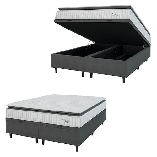 MODELO: Cama Box Colchão Baú Casal Queen Molas Ensacadas City Pillow Top 158x198x64cm