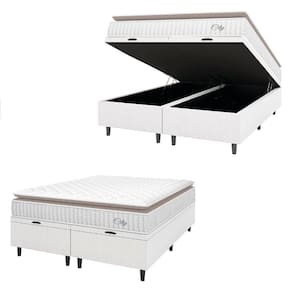 MODELO: Cama Box Colchão Baú Casal Queen Molas Ensacadas City Pillow Top 158x198x64cm Linho