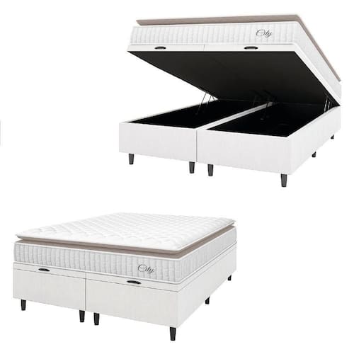 MEDIDAS:: [ A ] = 64 cm / 58 cm (Sem pés) [ L ] = 158 cm [ P ] = 198 cm | ALTURA DOS PÉS:: 6 cm | PESO SUPORTADO:: 110 kg por pessoa | MARCA DO COLCHÃO:: Hellen | REVESTIMENTO SUPERIOR E LATERAL:: Tecido em poliéster Branco e Bege que permite melhor ventilação, proporcionando conforto e sensação agradável ao toque. | REVESTIMENTO INTERIOR:: Molejo estrutural em molas ensacadas individualmente, que permitem que o colchão suporte até 110kg por pessoa, oferecendo conforto e estabilidade durante o sono. | REVESTIMENTO INFERIOR:: Tecido antiderrapante | PILLOW TOP:: Sim, oferecendo ainda mais sensação de conforto | ESPUMA:: D20 | MODELO:: CITY | MARCA DO BOX:: Prince | COR:: Branco / Bege | MATERIAL DOS PES:: Plástico | ITENS INCLUSOS:: 1 Colchão 1,58m de e 2 Box Baú de 0,79m | GARANTIA COLCHÃO:: 12 Meses pelo Fabricante | GARANTIA BOX:: 3 Meses pelo Fabricante | PES:: 12 | TECIDO DO BOX:: Linho | PESO:: 111,98kg | PRODUTO:: Cama Box Baú Queen | TAMANHO:: Queen Cor: BRANCO/BG