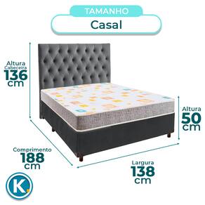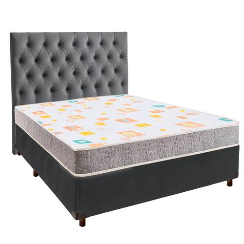 Cama Box + Colchão Casal D20 D20 Inducol + Cabeceira Estofada - Cinza | Marrom