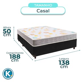 Conjunto Casal Colchão D20 + Cama BoxColchão Casal simples com 12cm de altura, ideal para uso leve e versátilTecido em poliéster com toque macio e fácil manutençãoSuporta até 40kg, indicado para crianças ou uso ocasionalBase box Casal ideal para otimizar o espaço do quarto com praticidadeRevestimento em Veludo: fácil de limpar e com visual modernoEstrutura firme e resistente com suporte para até 150kgFicha Técnica Colchão:Modelo: D20Marca: InducolTamanho: CasalTecido: PoliésterLargura: 138cmComprimento: 188cmAltura: 12cmSuporte de Peso: 40KgGarantia: 3 MesesFicha Técnica Cama Box:Modelo: UniversalMarca: NatureTamanho: CasalTecido: VeludoLargura: 138cmComprimento: 188cmAltura: 25cmAltura dos Pés: 13cmMaterial dos Pés: MadeiraSuporte de Peso: 150KgPeso: 27KgGarantia: 3 MesesAtenção:Antes da compra certifique-se de que o produto passa por elevadores, portas e corredores.As transportadoras não realizam entregas por escadas ou içamentos.Caso o item não caiba no elevador, a entrega será considerada concluída no térreo do prédio.A cor e tonalidade do produto pode variar de acordo com o dispositivo que o usuário está acessando.