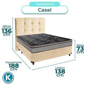 Modelo: Elite BiPartido Marca: Nature Tamanho: Casal Tecido: Veludo Largura: 138cm Comprimento: 188cm Altura: 35cm Altura dos Pés: 13cm Material dos Pés: Madeira Suporte de Peso: 150Kg Peso: 27Kg Garantia: 3 Meses