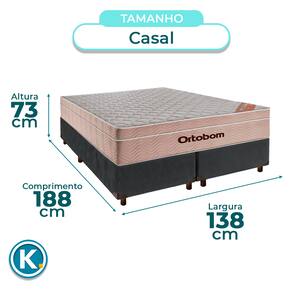 Conjunto Casal Colchão Airtech + Cama BoxColchão Ortobom Casal com 25cm de altura, ideal para conforto no uso diárioTecido em poliéster que garante toque suave e boa ventilaçãoSuporte de até 120kg, ideal para diferentes biotipos com firmeza balanceadaBase Box Casal Elite Bipartido em Veludo – Elegância com Facilidade no TransporteModelo bipartido: ideal para acessos estreitos, escadas e elevadoresEstrutura reforçada com suporte de até 150kg, garantindo durabilidade e segurançaFicha Técnica Colchão:Modelo: AirtechMarca: OrtobomTamanho: CasalTecido: PoliésterLargura: 138cmComprimento: 188cmAltura: 25cmSuporte de Peso: 120KgGarantia: 3 MesesFicha Técnica Cama Box:Modelo: Elite BiPartidoMarca: NatureTamanho: CasalTecido: VeludoLargura: 138cmComprimento: 188cmAltura: 35cmAltura dos Pés: 13cmMaterial dos Pés: MadeiraSuporte de Peso: 150KgPeso: 27KgGarantia: 3 MesesAtenção:Antes da compra certifique-se de que o produto passa por elevadores, portas e corredores.As transportadoras não realizam entregas por escadas ou içamentos.Caso o item não caiba no elevador, a entrega será considerada concluída no térreo do prédio.A cor e tonalidade do produto pode variar de acordo com o dispositivo que o usuário está acessando.
