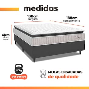 MODELO: Cama Box Casal Colchão Molas Ensacadas City Pillow Top 138x188x61cm