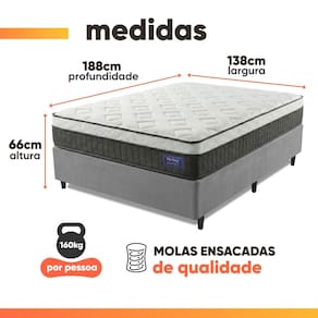 MODELO: Cama Box Colchão Casal Molas Ensacadas Euro In Atlantic 138x188x66cm Apolo