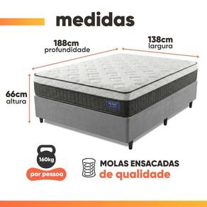 MODELO: Cama Box Colchão Casal Molas Ensacadas Euro In Atlantic 138x188x66cm Apolo