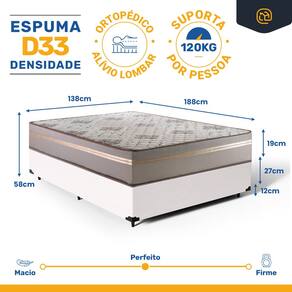 Produzido com materiais de qualidade, sua estrutura é composta por uma placa reforçada de poliestireno expandido, suporta até 120Kg (por pessoa), o que garante uma sustentação extra, o colchão Millenium One Face D33 possui 19cm de altura e o seu acabamento em espuma D33 e tecido Jacquard, é uma otima opção para quem não renuncia à saúde, conforto e um belo design, o mais legal que ele é ortopédico, o que garante a posição correta para sua coluna durante o seu sono.A base box é confeccionada com madeira de reflorestamento, tratamentos anticupim e antimofo. Seu revestimento de alta qualidade agrega valor e sofisticação ao quarto.