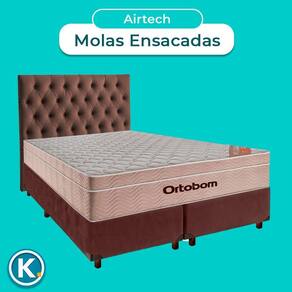 Cama Box + Colchão Queen Ortobom Molas Ensacadas Airtech + Cabeceira Estofada Conjunto Queen Colchão Airtech + Cama Box Colchão Ortobom Queen com 25cm de altura, ideal para conforto no uso diário