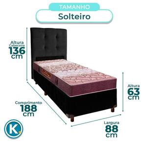 Modelo: Universal Marca: Nature Tamanho: Solteiro Tecido: Veludo Largura: 88cm Comprimento: 188cm Altura: 25cm Altura dos Pés: 13cm Material dos Pés: Madeira Suporte de Peso: 150Kg Peso: 18Kg Garantia: 3 Meses