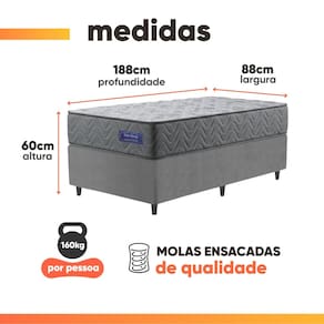 Projetado para oferecer suporte firme e auxiliar no alinhamento correto da coluna, a cama box Baú Atlanta é ideal para quem busca conforto aliado ao alívio de tensões durante o sono. Sua composição reúne espumas de alta qualidade, produzidas dentro dos padrões ABNT, e molas ensacadas individualmente, que se adaptam aos contornos do corpo, proporcionando maior conforto, estabilidade e durabilidade. Com capacidade de suporte de até 160 kg por pessoa, é a escolha perfeita para quem valoriza firmeza, conforto e um sono equilibrado, garantindo noites mais tranquilas e reparadoras. O box conta com acabamento em tecido reforçado, possui baú e um sistema de abertura fácil, onde você terá mais espaço para poder guardar os seus objetos pessoais, roupas, travesseiros, edredons. Confeccionado com materiais de qualidade garantindo maior durabilidade e resistência.