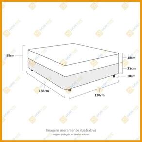 Especificações Técnicas – Base Box • Material da estrutura: Madeira de reflorestamento tratada • Revestimento: Tecido sintético de alta resistência • Altura da base: 25 cm • Altura dos pés: 10 cm (madeira maciça) • Peso máximo recomendado: até 100 kg por pessoa • Dimensões (L x C x A): 128 x 188 x 35 cm