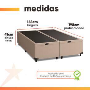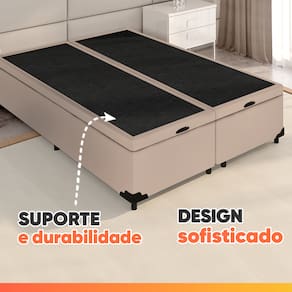 A Cama Box Bipartida com Baú é a escolha ideal para quem busca praticidade, conforto e um toque moderno no quarto. Com estrutura resistente em madeira de eucalipto e pinus, ela oferece durabilidade e segurança, além de um belo acabamento em tecido suede, fácil de limpar e extremamente elegante. Seu sistema de abertura fácil do baú permite um aproveitamento inteligente do espaço, ideal para guardar roupas, travesseiros, edredons e objetos pessoais, mantendo tudo sempre organizado. Por ser bipartida, também facilita o transporte e a instalação, principalmente em ambientes com espaços mais reduzidos. Além disso, acompanha jogo de pés em PVC, garantindo estabilidade e completando o visual moderno do móvel. A Cama Box com Baú é perfeita para transformar seu quarto em um ambiente mais bonito, funcional e acolhedor.