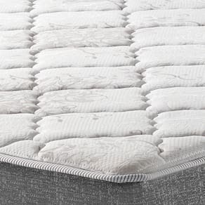 Bordado Matelasse - Este metodo confere volume ao tecido, ampliando a sensacao de suavidade e conferindo ao colchao um visual esteticamente agradavel. Alem de embelezar, ele contribui para uma noite de sono aconchegante e confortavel, garantindo bem-estar e uma notavel maciez.