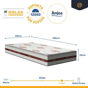 Buscando uma cama que ofereça conforto e suporte para suas noites de sono? O colchão Classic da D Angelis, com suas molas ensacadas, proporciona um descanso macio e uma superfície de suporte que se adapta ao corpo. Este colchão garante um ambiente de sono saudável e higiênico, suportando até 120kg por pessoa.