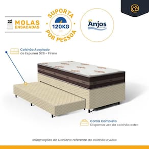 A base acompanha um colchão auxiliar fixo de espuma D28, proporcionando um suporte firme e ortopédico, ideal para quem precisa de um apoio adicional. É uma escolha inteligente para quem busca conforto, praticidade e estilo em um único produto.