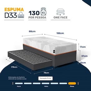 A espuma D33 garante suporte firme e estável, ideal para quem busca alinhamento corporal e conforto consistente no uso diário.