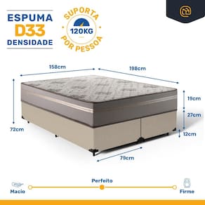 - Dimensões (larg. x comp. x alt.) Queen: 158x198x39cm Bipartido(2 Partes de 79).