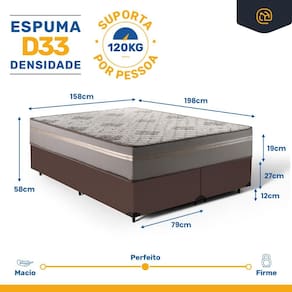 - Dimensões (larg. x comp. x alt.) Queen: 158x198x39cm Bipartido(2 Partes de 79).