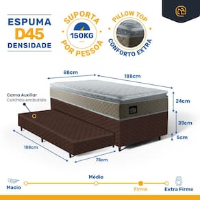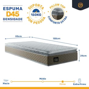 O pillow top adiciona uma camada extra de maciez, transformando cada noite em uma experiência de sono restauradora. A combinação de materiais de alta qualidade e a construção cuidadosa garantem durabilidade e conforto contínuo.