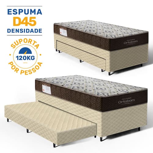 E sobre a base? Ela inclui uma cama auxiliar fixa com colchão de espuma, proporcionando um conforto firme e ortopédico para quem busca apoio adicional. Esta cama oferece fácil acesso e uma solução prática para quartos compactos, tornando-a uma escolha inteligente para quem valoriza conforto, suporte e otimização do espaço.