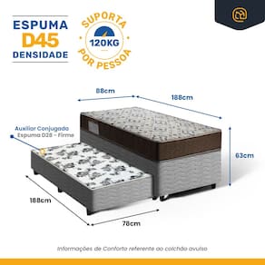 - Dimensões do produto (larg. x comp. x alt.) Solteiro: 88x188x45cm;