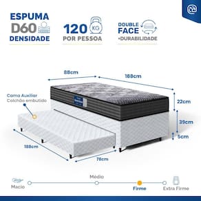 - Tipo de colchão Auxiliar: Espuma D28;