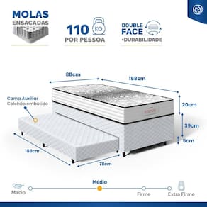 - Tipo de colchão Auxiliar: Espuma D28;