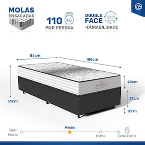 - Dimensões (larg. x comp. x alt.) Solteiro: 88x188x39cm;
