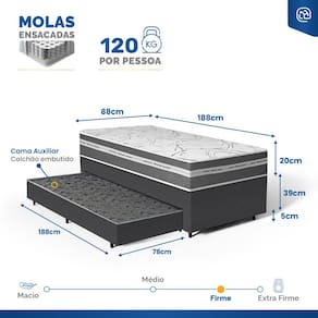 - Dimensões do produto (larg. x comp. x alt.) Solteiro: 88x188x49cm;