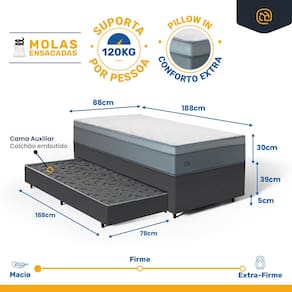 - Tipo de colchão Auxiliar: Espuma D28;