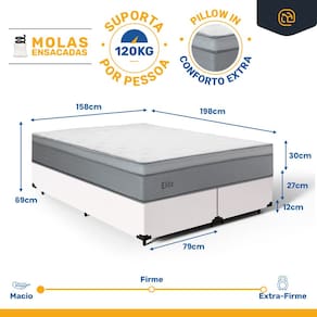 - Dimensões (larg. x comp. x alt.) Queen: 158x198x39cm Bipartido(2 Partes de 79);