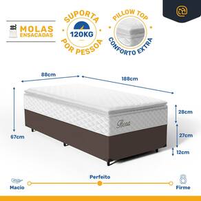 - Dimensões do produto (larg. x comp. x alt.) Solteiro: 88x188x39cm;