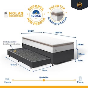 - Tipo de colchão Auxiliar: Espuma D28;