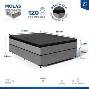 - Dimensões (larg. x comp. x alt.) 138x188x25cm.