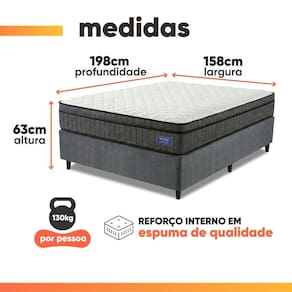 Cama Box Desmontável Colchão Queen Ortopédico D33 Euro Pillow Ultra 158x198x63cm Cinza