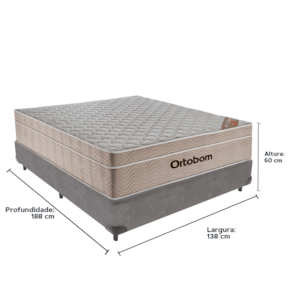 O conforto que sua casa precisa e a qualidade que você merece está na Kazamix! Durma com a Qualidade e Conforto que Você Merece! O Colchão Airtech Molas ensacadas Ortobom é a escolha perfeita para quem busca conforto e suporte. Equipado com um sistema de molas ensacadas, ele oferece suporte individualizado, garantindo o alinhamento correto da coluna e reduzindo os impactos dos movimentos durante o sono. O Euro Pillow proporciona uma camada extra de maciez, garantindo um sono ainda mais revigorante. Seu revestimento em tecido de malha e matelassê, junto com a lateral em suede, proporcionam um visual sofisticado, elevando ainda mais a estética do seu dormitório e agregando elegância ao ambiente. Além disso, o colchão conta com proteção antiácaro e antialérgico, criando um ambiente de sono mais saudável e ideal para quem busca bem-estar. Produzido com materiais de alta qualidade e a confiabilidade da Ortobom, líder em tecnologia e durabilidade, ele é feito para durar, oferecendo anos de conforto e suporte. Modelo: Airtech Molas ensacadas Marca: Ortobom Tamanho: Casal Dimensões: 138x188X25 (Largura x Comprimento x Altura) Conforto: Macio Sistema: Molas Ensacadas Pillow: Euro Pillow Peso Máximo recomendado: 120 kg (Por pessoa) Proteções: Antiácaro, antialérgico, antifungo, antimofo Garantia: 1 ano pelo FabricanteO conforto que sua casa precisa e a qualidade que você merece está na Kazamix! Eleve o conforto e a sofisticação do seu quarto com a Cama Box! Produzida em madeira de reflorestamento reforçada, a Cama Box combina qualidade, durabilidade e um design elegante, que confere leveza e modernidade ao seu dormitório. Sua estrutura robusta suporta até 150 kg por pessoa, garantindo a sustentação perfeita para o colchão e prolongando a vida útil do produto. Com uma altura ergonômica, ela oferece maior conforto ao deitar e levantar, enquanto o acabamento de alta qualidade se adapta a qualquer estilo de decoração, unindo praticidade e estilo. Não perca tempo! Adquira agora mesmo a sua Cama Box e transforme seu dormitório com conforto e elegância. Marca: KazaMix Modelo: Box Tamanho: Casal Dimensões: 138X188X35 (Largura x Comprimento x Altura) Estrutura: Madeira Peso máximo recomendado: 150 kg (Por Pessoa) Altura do Box: 25 cm Altura dos Pés: 10 cm Altura total: 35 cm Garantia: 03 meses Selo Ecologicamente Correto Atenção: Antes de finalizar sua compra, certifique-se de que as dimensões do produto sejam adequadas para serem transportadas pelos elevadores, portas, escadas e corredores de sua residência. Ressaltamos que não nos responsabilizamos pelo transporte do produto por meios específicos, como escadas, guinchos ou içamentos.