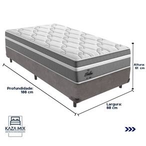 O conforto que sua casa precisa e a qualidade que você merece está na Kazamix! Apresentamos o Colchão Probel Berlim, a escolha ideal para quem busca conforto e qualidade. Com Molas Ensacadas e camada Euro Pillow, ele proporciona suporte individualizado e maciez extra para um sono tranquilo. A espuma D28 oferece durabilidade e conforto, enquanto o tecido em malha e jacquard garante um toque sofisticado e respirabilidade. Além disso, conta com proteções antiácaro e antialérgico, criando um ambiente saudável para o seu descanso. Invista no seu conforto com o Colchão Probel Berlim! Modelo: Berlim Marca: Probel Tamanho: Solteiro Dimensões: 88x188X32 (Largura x Comprimento x Altura) Conforto: Intermediário Sistema: Molas Ensacadas Pillow: Euro Pillow Peso Máximo recomendado: 110 kg (Por pessoa) Proteções: Antiácaro, antialérgico, antifungo, antimofo Garantia: 1 ano pelo FabricanteO conforto que sua casa precisa e a qualidade que você merece está na Kazamix! Eleve o conforto e a sofisticação do seu quarto com a Cama Box! Produzida em madeira de reflorestamento reforçada, a Cama Box combina qualidade, durabilidade e um design elegante, que confere leveza e modernidade ao seu dormitório. Sua estrutura robusta suporta até 150 kg por pessoa, garantindo a sustentação perfeita para o colchão e prolongando a vida útil do produto. Com uma altura ergonômica, ela oferece maior conforto ao deitar e levantar, enquanto o acabamento de alta qualidade se adapta a qualquer estilo de decoração, unindo praticidade e estilo. Não perca tempo! Adquira agora mesmo a sua Cama Box e transforme seu dormitório com conforto e elegância. Marca: KazaMix Modelo: Box Tamanho: Solteiro Dimensões: 88X188X35 (Largura x Comprimento x Altura) Estrutura: Madeira Peso máximo recomendado: 150 kg (Por Pessoa) Altura do Box: 25 cm Altura dos Pés: 10 cm Altura total: 35 cm Garantia: 03 meses Selo Ecologicamente Correto Atenção: Antes de finalizar sua compra, certifique-se de que as dimensões do produto sejam adequadas para serem transportadas pelos elevadores, portas, escadas e corredores de sua residência. Ressaltamos que não nos responsabilizamos pelo transporte do produto por meios específicos, como escadas, guinchos ou içamentos.
