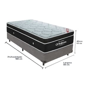 Cama Box e Colchão Elegant Molas Ensacadas Solteiro Ortobom - Cinza
