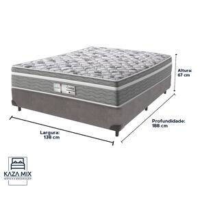 O conforto que sua casa precisa e a qualidade que você merece está na Kazamix! O Colchão Evolution é a escolha ideal para quem busca conforto, suporte e qualidade em cada noite de sono. Com Molas Ensacadas que oferecem um suporte individualizado, e um Pillow Euro que proporciona uma camada extra de suavidade, esse colchão transforma seu descanso em uma experiência de luxo. Com espuma D28 de alta densidade, o Evolution garante firmeza e conforto duradouros. Seu acabamento em poliéster diamante e bordado em matelassê trazem um toque de elegância e sofisticação ao seu ambiente. Além disso, o colchão é tratado com propriedades antiácaro e antialérgico, garantindo um sono mais saudável e seguro. Invista no seu bem-estar com o colchão Evolution, e experimente a combinação perfeita de conforto e durabilidade! Modelo: Evolution Marca: Probel Tamanho: Casal Dimensões: 138x188X32 (Largura x Comprimento x Altura) Conforto: Intermediário Sistema: Molas Ensacadas Pillow: Euro Pillow Peso Máximo recomendado: 110 kg (Por pessoa) Proteções: Antiácaro, antialérgico, antifungo, antimofo Garantia: 1 ano pelo FabricanteO conforto que sua casa precisa e a qualidade que você merece está na Kazamix! Eleve o conforto e a sofisticação do seu quarto com a Cama Box! Produzida em madeira de reflorestamento reforçada, a Cama Box combina qualidade, durabilidade e um design elegante, que confere leveza e modernidade ao seu dormitório. Sua estrutura robusta suporta até 150 kg por pessoa, garantindo a sustentação perfeita para o colchão e prolongando a vida útil do produto. Com uma altura ergonômica, ela oferece maior conforto ao deitar e levantar, enquanto o acabamento de alta qualidade se adapta a qualquer estilo de decoração, unindo praticidade e estilo. Não perca tempo! Adquira agora mesmo a sua Cama Box e transforme seu dormitório com conforto e elegância. Marca: KazaMix Modelo: Box Tamanho: Casal Dimensões: 138X188X35 (Largura x Comprimento x Altura) Estrutura: Madeira Peso máximo recomendado: 150 kg (Por Pessoa) Altura do Box: 25 cm Altura dos Pés: 10 cm Altura total: 35 cm Garantia: 03 meses Selo Ecologicamente Correto Atenção: Antes de finalizar sua compra, certifique-se de que as dimensões do produto sejam adequadas para serem transportadas pelos elevadores, portas, escadas e corredores de sua residência. Ressaltamos que não nos responsabilizamos pelo transporte do produto por meios específicos, como escadas, guinchos ou içamentos.