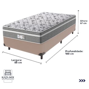 O conforto que sua casa precisa e a qualidade que você merece está na Kazamix! O Colchão Evolution é a escolha ideal para quem busca conforto, suporte e qualidade em cada noite de sono. Com Molas Ensacadas que oferecem um suporte individualizado, e um Pillow Euro que proporciona uma camada extra de suavidade, esse colchão transforma seu descanso em uma experiência de luxo. Com espuma D28 de alta densidade, o Evolution garante firmeza e conforto duradouros. Seu acabamento em poliéster diamante e bordado em matelassê trazem um toque de elegância e sofisticação ao seu ambiente. Além disso, o colchão é tratado com propriedades antiácaro e antialérgico, garantindo um sono mais saudável e seguro. Invista no seu bem-estar com o colchão Evolution, e experimente a combinação perfeita de conforto e durabilidade! Modelo: Evolution Marca: Probel Tamanho: Solteiro Dimensões: 88x188X32 (Largura x Comprimento x Altura) Conforto: Intermediário Sistema: Molas Ensacadas Pillow: Euro Pillow Peso Máximo recomendado: 110 kg (Por pessoa) Proteções: Antiácaro, antialérgico, antifungo, antimofo Garantia: 1 ano pelo FabricanteO conforto que sua casa precisa e a qualidade que você merece está na Kazamix! Eleve o conforto e a sofisticação do seu quarto com a Cama Box! Produzida em madeira de reflorestamento reforçada, a Cama Box combina qualidade, durabilidade e um design elegante, que confere leveza e modernidade ao seu dormitório. Sua estrutura robusta suporta até 150 kg por pessoa, garantindo a sustentação perfeita para o colchão e prolongando a vida útil do produto. Com uma altura ergonômica, ela oferece maior conforto ao deitar e levantar, enquanto o acabamento de alta qualidade se adapta a qualquer estilo de decoração, unindo praticidade e estilo. Não perca tempo! Adquira agora mesmo a sua Cama Box e transforme seu dormitório com conforto e elegância. Marca: KazaMix Modelo: Box Tamanho: Solteiro Dimensões: 88X188X35 (Largura x Comprimento x Altura) Estrutura: Madeira Peso máximo recomendado: 150 kg (Por Pessoa) Altura do Box: 25 cm Altura dos Pés: 10 cm Altura total: 35 cm Garantia: 03 meses Selo Ecologicamente Correto Atenção: Antes de finalizar sua compra, certifique-se de que as dimensões do produto sejam adequadas para serem transportadas pelos elevadores, portas, escadas e corredores de sua residência. Ressaltamos que não nos responsabilizamos pelo transporte do produto por meios específicos, como escadas, guinchos ou içamentos.O conforto que sua casa precisa e a qualidade que você merece está na Kazamix! O Colchão Evolution é a escolha ideal para quem busca conforto, suporte e qualidade em cada noite de sono. Com Molas Ensacadas que oferecem um suporte individualizado, e um Pillow Euro que proporciona uma camada extra de suavidade, esse colchão transforma seu descanso em uma experiência de luxo. Com espuma D28 de alta densidade, o Evolution garante firmeza e conforto duradouros. Seu acabamento em poliéster diamante e bordado em matelassê trazem um toque de elegância e sofisticação ao seu ambiente. Além disso, o colchão é tratado com propriedades antiácaro e antialérgico, garantindo um sono mais saudável e seguro. Invista no seu bem-estar com o colchão Evolution, e experimente a combinação perfeita de conforto e durabilidade! Modelo: Evolution Marca: Probel Tamanho: Solteiro Dimensões: 88x188X32 (Largura x Comprimento x Altura) Conforto: Intermediário Sistema: Molas Ensacadas Pillow: Euro Pillow Peso Máximo recomendado: 110 kg (Por pessoa) Proteções: Antiácaro, antialérgico, antifungo, antimofo Garantia: 1 ano pelo FabricanteO conforto que sua casa precisa e a qualidade que você merece está na Kazamix! Eleve o conforto e a sofisticação do seu quarto com a Cama Box! Produzida em madeira de reflorestamento reforçada, a Cama Box combina qualidade, durabilidade e um design elegante, que confere leveza e modernidade ao seu dormitório. Sua estrutura robusta suporta até 150 kg por pessoa, garantindo a sustentação perfeita para o colchão e prolongando a vida útil do produto. Com uma altura ergonômica, ela oferece maior conforto ao deitar e levantar, enquanto o acabamento de alta qualidade se adapta a qualquer estilo de decoração, unindo praticidade e estilo. Não perca tempo! Adquira agora mesmo a sua Cama Box e transforme seu dormitório com conforto e elegância. Marca: KazaMix Modelo: Box Tamanho: Solteiro Dimensões: 88X188X35 (Largura x Comprimento x Altura) Estrutura: Madeira Peso máximo recomendado: 150 kg (Por Pessoa) Altura do Box: 25 cm Altura dos Pés: 10 cm Altura total: 35 cm Garantia: 03 meses Selo Ecologicamente Correto Atenção: Antes de finalizar sua compra, certifique-se de que as dimensões do produto sejam adequadas para serem transportadas pelos elevadores, portas, escadas e corredores de sua residência. Ressaltamos que não nos responsabilizamos pelo transporte do produto por meios específicos, como escadas, guinchos ou içamentos.
