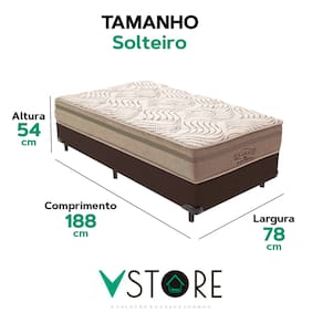 A tecnologia que a sua casa merece está na V-Store! O Conjunto Colchão Los Angeles + Base Box Baú Bravus da V-Store oferece conforto e funcionalidade. O colchão, com molas ensacadas e sistema EPS, garante suporte ideal, conforto térmico e proteção antiácaro. A base box, com amplo espaço de armazenamento, é feita de madeira reflorestada e revestida com tecido resistente, proporcionando praticidade e sofisticação ao seu quarto.Característica Do Colchão: Modelo: Los AngelesMarca: V-StoreTamanho: SolteiroDimensões: 78x28x188 (Largura x Altura x Comprimento)Conforto: MédioSistema: Molas EnsacadasPillow: Não se aplicaPeso Máximo recomendado: 150 kg (Por pessoa)Proteções: Antiácaro, antialérgico, antifungo, antimofoGarantia: 12 Meses (Espuma) / 10 anos ( Conjunto de Molas Ensacadas)Característica Da Base: Marca: V-StoreModelo: BravusTamanho: SolteiroDimensões: 78x44x188 (Largura x Altura x Comprimento)Estrutura: MadeiraPeso máximo recomendado: 150 kg (Por Pessoa)Altura do Box: 26 cmAltura dos Pés: 6 cmAltura total: 44 cmGarantia: 12 Meses (Estrutura) / 3 meses (Tecido)Selo Ecologicamente CorretoAtenção:- Antes de finalizar sua compra, recomendamos que verifique se as dimensões do produto são adequadas para serem transportadas pelos elevadores, portas, escadas e corredores de sua residência. Ressaltamos que não nos responsabilizamos pelo transporte do produto por meios específicos, como escadas, guinchos ou içamentos.- É possível que hajam leves variações de cor de acordo com o dispositivo que está sendo utilizado como smartphones, computadores, monitores e outros.