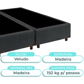 Base Box King Universal em Veludo – Conforto, Estilo e Estrutura para Seu QuartoRevestimento em veludo, com acabamento sofisticado e toque aveludadoMedidas Queen: 193x203cm, ideal para colchões maiores e mais espaçososEstrutura reforçada com suporte de até 150kg, garantindo segurança e durabilidadeAltura total de 42cm, proporcionando presença e conforto no ambientePés em madeira com 13cm, oferecendo firmeza e estabilidade ao conjuntoLeve e funcional: com apenas 20kg, facilita o transporte e a montagemExcelente escolha para quartos residenciais e acomodações refinadasFicha Técnica Cama Box:Modelo: UniversalMarca: NatureTamanho: KingTecido: VeludoLargura: 193cmComprimento: 203cmAltura: 25cmAltura dos Pés: 13cmMaterial dos Pés: MadeiraSuporte de Peso: 150KgPeso: 40KgGarantia: 3 MesesAtenção:Antes da compra certifique-se de que o produto passa por elevadores, portas e corredores.As transportadoras não realizam entregas por escadas ou içamentos.Caso o item não caiba no elevador, a entrega será considerada concluída no térreo do prédio.A cor e tonalidade do produto pode variar de acordo com o dispositivo que o usuário está acessando.