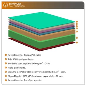 Atraves da utilizacao das espumas mais avancadas do mercado, o colchao San Francisco oferece um nivel de conforto excepcional. Em comparacao aos colchoes de molas, os modelos de espuma se destacam por sua firmeza, resultando em um sono profundamente revigorante para nossos clientes.