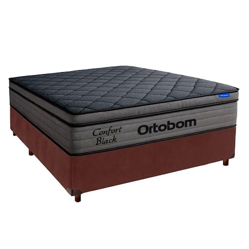 Cama Box Marrom+colchão Casal Confort Black Espuma Ortobom Conjunto Casal Colchão Confort Black + Cama Box Marrom O Colchão Confort Black Ortobom une tecnologia e conforto para um sono de qualidade. Conta com pillow top em espuma D28 selada, que garante maciez, resiliência e durabilidade. Sua estrutura interna em EPS de alta resistência oferece suporte firme e estável, mantendo a ergonomia ideal.