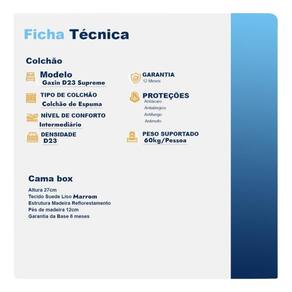 A altura de 27 cm proporciona praticidade e um excelente suporte para um descanso tranquilo. A Cama Box Gazin oferece uma experiência de conforto excepcional para o seu dia a dia.