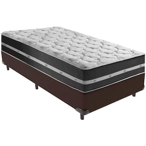 Cama Box Marrom E Colchão Classic Preto Molas Ensacadas Solteiro
