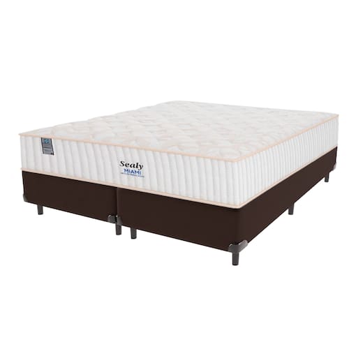 Bem-vindo(a) ao nosso catálogo! Apresentamos a você uma descrição completa sobre esse produto: A marca SealyEntre as personalidades que usam e usaram os colchões da marca Sealy estão a cantora Adele, Rainha Elizabeth II, a apresentadora Ellen DeGeneres e o jogador de basquete LeBron James. Atendendo também os hotéis da Disney, Copacabana Palace, Hard Rock Hotels e outros. Referência na fabricação de colchões de alta qualidade, a empresa foi fundada em 1881. Investindo em tecnologia de ponta e materiais premium para produzir produtos duráveis e confortáveis, é reconhecida por diversos consumidores famosos em todo o mundo. Modelo: MiamiNível de Conforto: FirmeSuporte de peso: 240kg (120kg por pessoa)Pillow Top: EuroPillowMolas: Ensacadas Altura: 26cmO sistema Polyframe reforça as bordas do colchão com espuma de alto suporte. Essa estrutura envolve toda a lateral do colchão. Por conseguinte, aumenta a área útil de sono e proporciona firmeza adicional nas laterais. Assim, garante um uso homogêneo de toda a superfície do colchão. Ademais, a Manta Acrílica protege as molas e a espuma. Este material aumenta a firmeza e estabilidade do colchão, contribuindo para sua durabilidade ao evitar o desgaste prematuro. - Proporciona uma área de sono maior e mais firme. - Previne o desgaste prematuro das molas e da espuma. - Garante um uso homogêneo da superfície do colchão. Os colchões Sealy são fabricados segundo os altos padrões dos laboratórios americanos, líderes em inovação. Além disso, esta tecnologia garante uma zona de conforto ampliada, assegurando a qualidade excepcional do produto. Além disso, o EuroPillow adiciona uma camada de maciez extra. Este elemento atua como um travesseiro gigante no topo do colchão, proporcionando uma aparência de luxo e conforto adicional. Proteção Antiácaro e AntifungoOs colchões Sealy possuem tratamento especial contra ácaros, fungos e outras bactérias. Esse tratamento é vital, especialmente em climas tropicais onde a umidade pode facilitar o crescimento de ácaros e fungos. Portanto, ele previne crises alérgicas respiratórias comuns nesses ambientes. O revestimento inferior do colchão é antiderrapante, garantindo que ele permaneça estável mesmo com movimentos intensos. Além disso, o tecido Suede na faixa lateral dá um toque macio e confere um visual elegante ao colchão. Este colchão possui molas ensacadas que oferecem suporte individualizado. Cada mola responde de forma independente, adaptando-se ao peso de cada usuário sem transferir movimento. Portanto, ele é ideal para garantir uma boa noite de sono a todos os biótipos. Além de tudo, esse produto acompanha a Cama Box da Kaza Mix e assim se torna um conjunto perfeito para o seu quarto! Marca: Kaza MixCor do Box: MarromTamanho: QueenMaterial dos pés: MadeiraEstrutura: MadeiraPeso máximo recomendado: Até 150kg de cada ladoLargura: 158cmComprimento: 198cmAltura dos pés: 12cmAltura total: 42cmGarantia: 03 mesesSelo Ecologicamente CorretoAtenção: - Antes de finalizar sua compra, recomendamos que verifique se as dimensões do produto são adequadas para serem transportadas pelos elevadores, portas, escadas e corredores de sua residência. Ressaltamos que não nos responsabilizamos pelo transporte do produto por meios específicos, como escadas, guinchos ou içamentos. - É possível que hajam leves variações de cor de acordo com o dispositivo que está sendo utilizado como smartphones, computadores, monitores e outros.