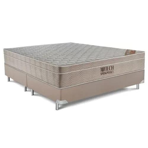 Cama Box Queen bege + Colchão De Molas Ensacadas Airtech - 158x198x63
