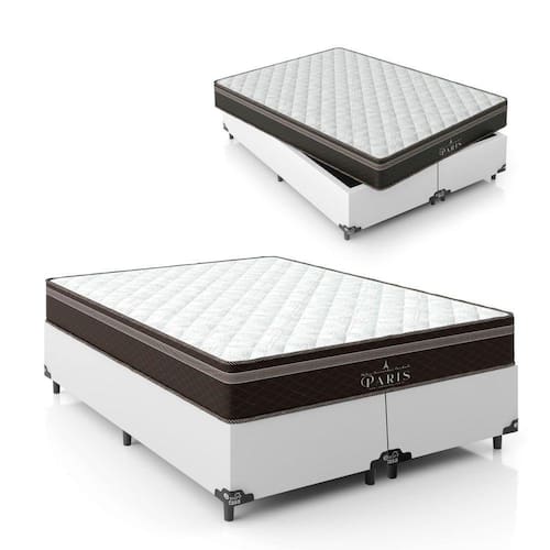 Cama Box Queen Bipartido + Colchão Paris Molas Ensacadas - e-Shop Casa