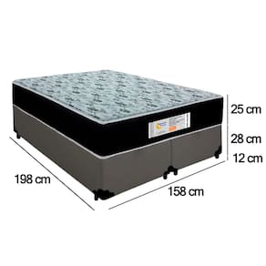 Cama Box Queen Bipartido Sintético + Colchão Molas Ensacadas SerenePrime Sonnolux 158x198x65 Cinza